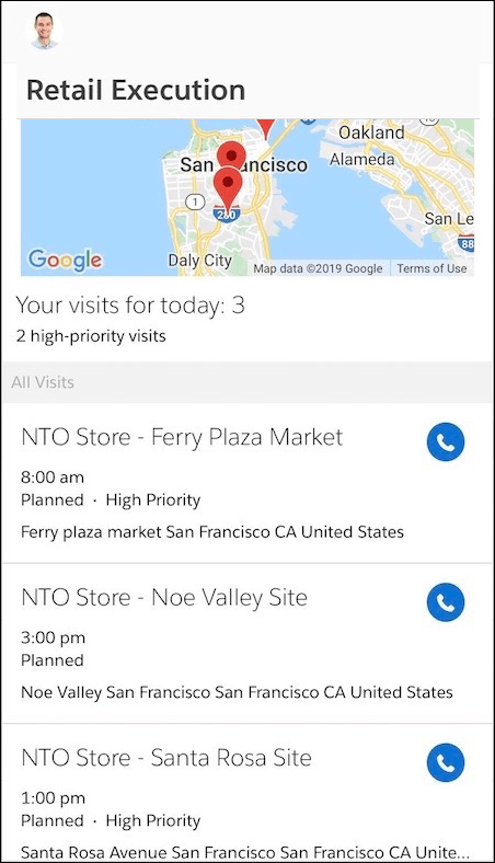 3. Optimised Visit Sequences. This feature is available to users with the Consumer Goods License applies to Lightning Experience and all versions of the Salesforce app in Enterprise, Performance, and Unlimited editions where Retail Execution is enabled. Consumer Goods Cloud uses Salesforce Maps to determine the best sequence of store visits based on distance, travel time, and store hours.