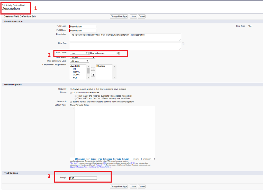 To shorten your Description field we need to create the formula. Make sure Data type is Text. We are using 252 characters and 3 dots at the end to show the user that this is a “sample” note.