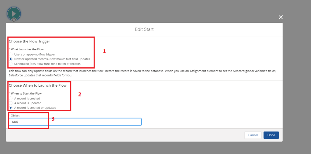 Once you click create, choose the Flow Trigger and when to launch the flow.
