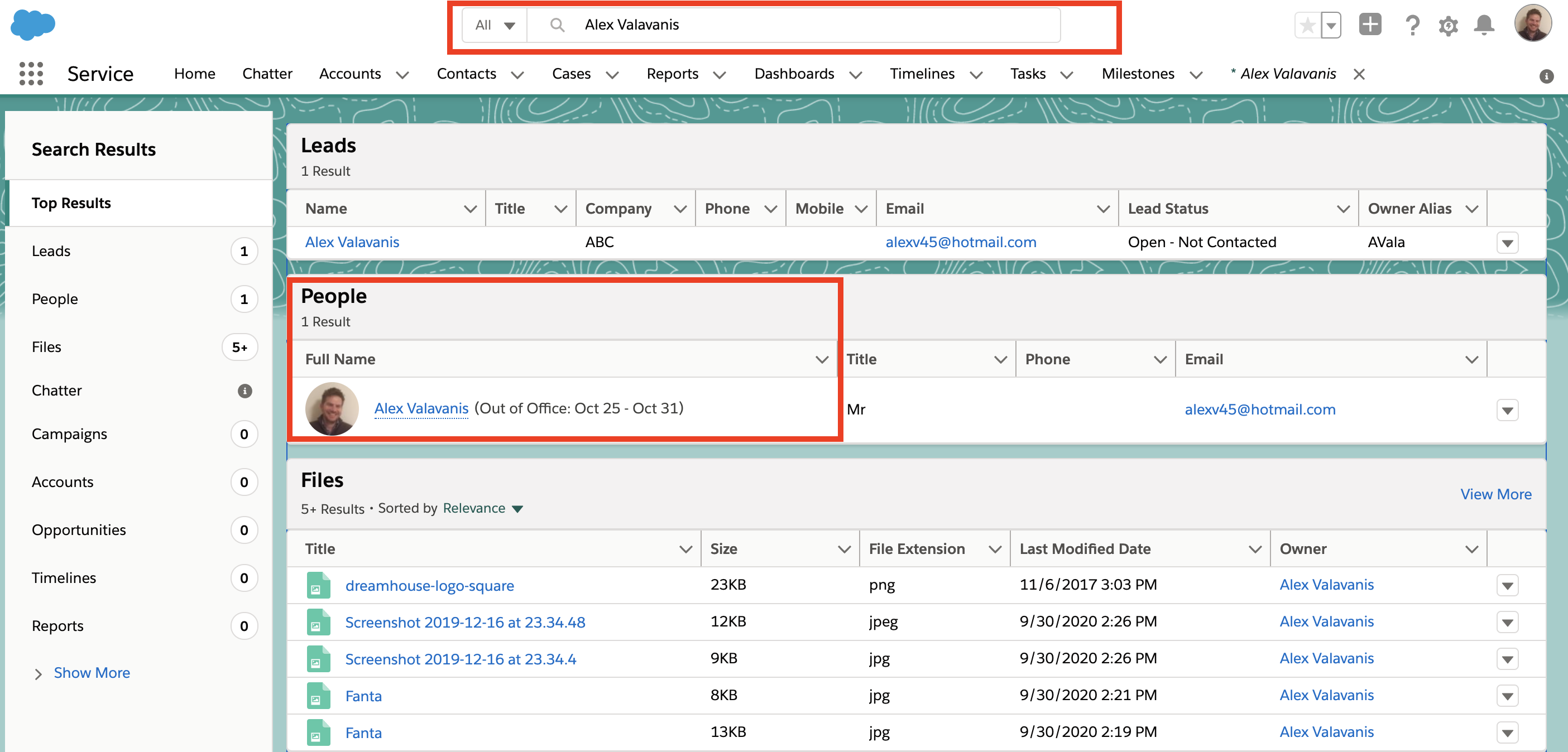 8. The “Out of Office” message appears whenever you type the name.