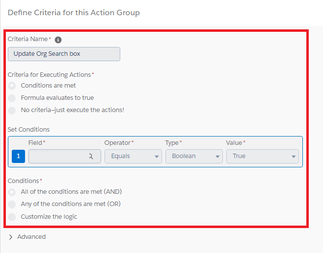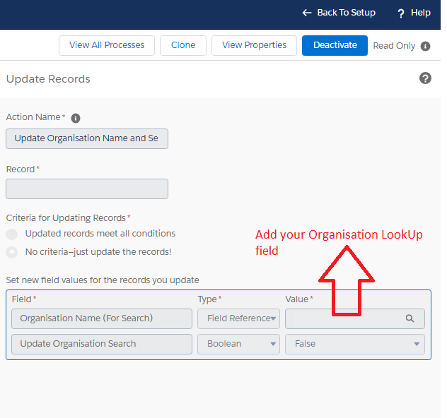 - Update Organisation Search – Checkbox (I will explain later why we are creating this field)