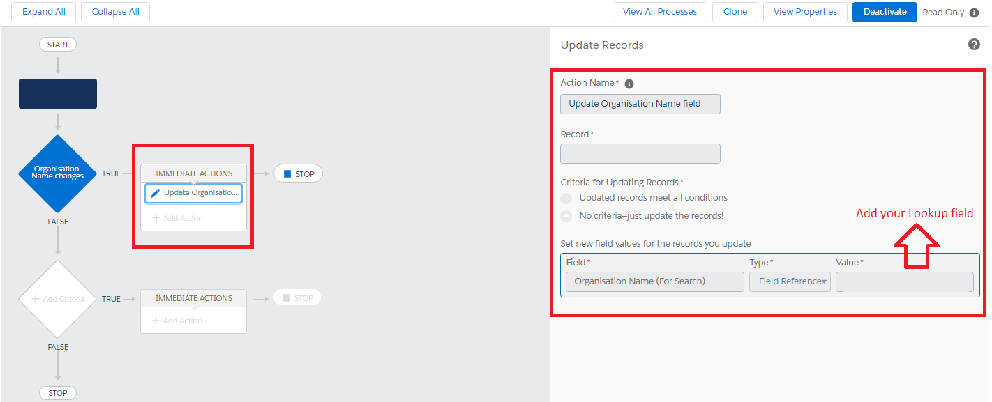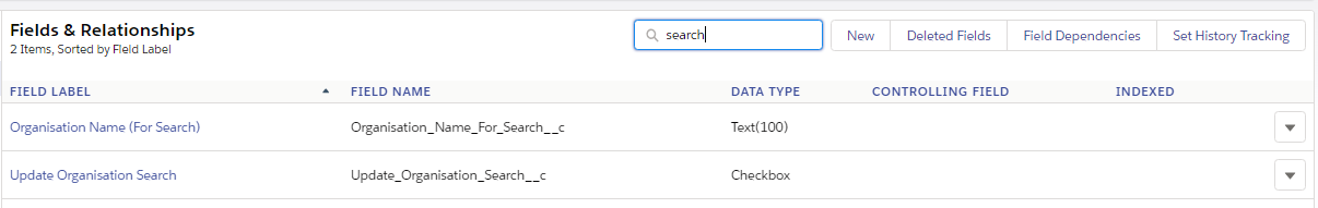 - Update Organisation Search – Checkbox (I will explain later why we are creating this field)