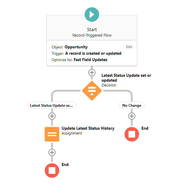 The idea here is that when users add some text in the “Latest Status Update”, this will be populated in the “History Status Update” when the record is saved.
