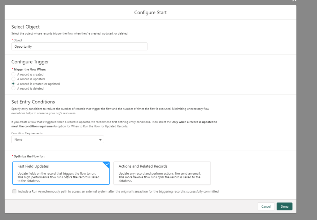 Step 3: Create an Record-Triggered Flow (Screenshot below)