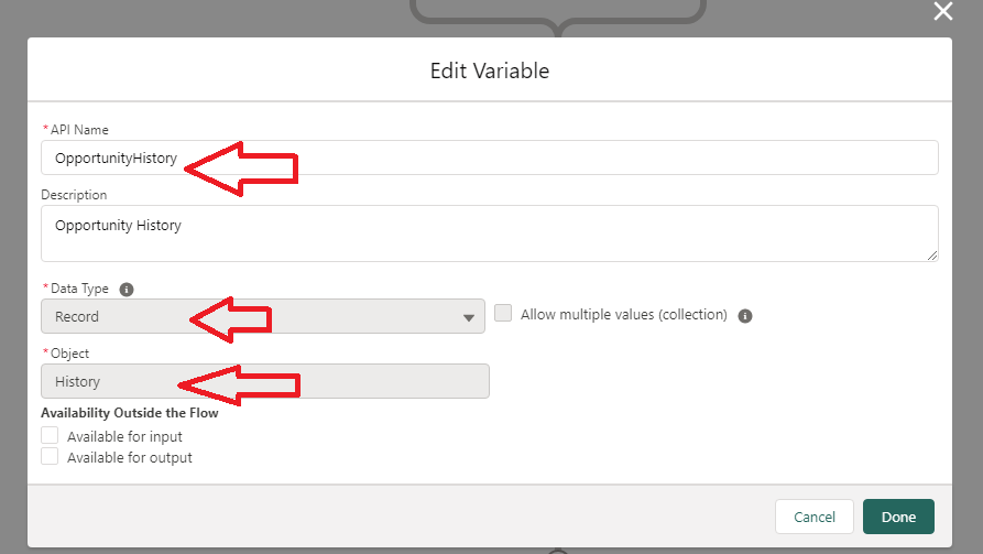 • Create a Single Record Variable (we will add this to the next Element which will be an Assignment element)