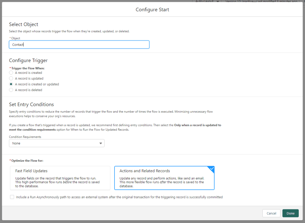 Step 5: We now need to create another Record-Triggered Flow for the User object as we also need to consider the fact that if these fields from the User record change, then that flow needs to update the fields for that contact record. For example, if the country field of a user changes, then the country field for all the contacts that have that User as a Contact Owner need to change.