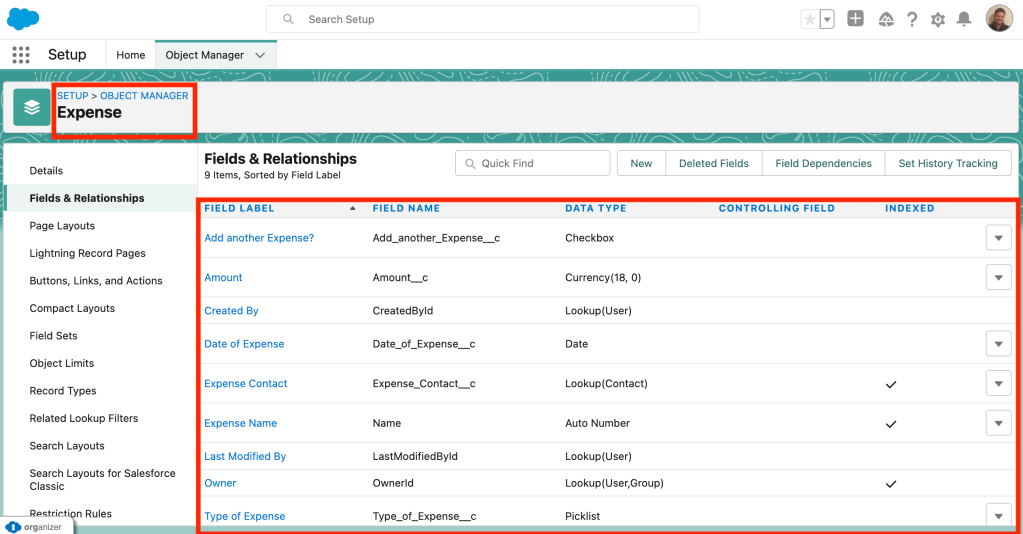 Step 1: First step is to create a custom object and name it “Expenses”. We also need to create the following fields within the object.