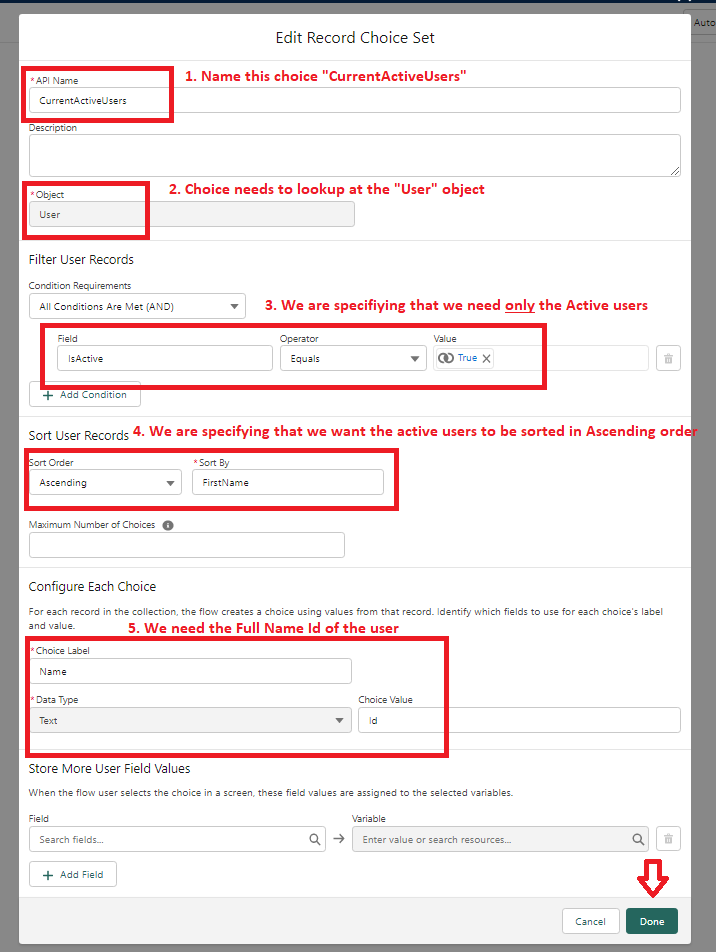 Scenario is to allow the users to bulk update ownership records with minimum number of clicks using a screen flow. For this example I will be assuming that the request is to use 2 objects, Customers and Cases. We will add the screen flow to the home page layout and users will be able to click on which object they want to update and then change the ownership of the records associated to that object from an existing user to a new user. As you will notice below the flow is looking only at active users. For this scenario users have 2 objects to choose from (Customers and Cases) but you can add as many choices as you want.